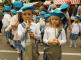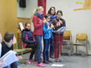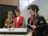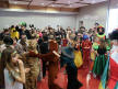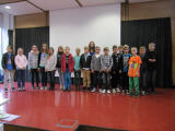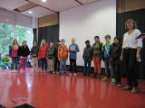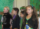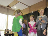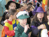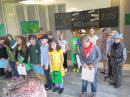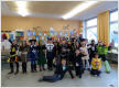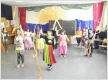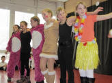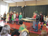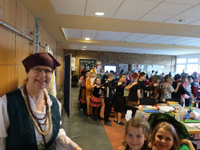 Stolz präsentierten sich dort auf der Bühne alle Schüler mit ihren phantasievollen Verkleidungen. Prinzessinnen, Cowboys, Agenten, Polizisten, Indianer, Clowns, Tiger, Ritter, Piraten und vieles mehr konnte bewundert werden. Mit einer ‚Rakete‘ wurden danach die einzelnen Klassen und Gruppen belohnt, die ihren Mitschülern vorbereiteten Spiele, Lieder oder Mitmachtänze zeigten.