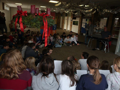„Leise rieselt der Schnee“, mit diesem schönen Weihnachtslied beendeten die Viertklässler ihr kleines Programm im Rahmen der gemeinsamen Adventsfeiern der Grundschule am Montag nach dem 4. Advent. Seit Jahren ist es an unserer Grundschule üblich, dass die Adventswochen gemeinsam in der Aula begonnen werden, wobei jede Klassenstufe auf ihre Art und Weise jeweils ein kleines vorweihnachtliches Programm gestaltet. So begannen die Erstklässler mit einer kleinen Casting Show, bei der es galt den Stern von Bethlehem zu finden. Eine Woche später kam der Nikolaus zu Besuch. Nachdem die Zweitklässler ihm schöne Gedichte und nette Briefe vorgelesen hatten, und nachdem er in seinem goldenen Buch fast nur Gutes über die Kinder fand, überreichte er allen Klassen kleine Geschenke. Am Tag nach dem 3. Advent erfreuten die Kinder der Klassen 3a und 3b ihre Mitschüler mit schönen Liedern und Texten. Der letzte Adventsmontag wurde von den Klassen 4a und 4b liebevoll gestaltet. „Das Licht einer Kerze“ stand im Vordergrund und wurde mit Gedichten und musikalischer Umrahmung nett dargestellt.