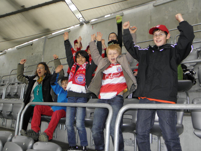 Am Samstag, den 9.3.2013 machten wir uns mit Frau Funk und Frau Lanzinger auf den Weg nach München. Dort wollten wir gemeinsam mit vielen anderen Bayernfans das Fußballspiel des FC Bayern München gegen Fortuna Düsseldorf ansehen. In der Allianz Arena wurde erst einmal alles gründlich erkundet. Fasziniert waren wir von der Schwindel erregenden Größe des Stadions, doch nach einer kleinen Stärkung durch eine leckere Stadionwurst legte sich die erste Aufregung. Interessiert schauten alle zu, wie sich beide Mannschaften auf dem Platz vorbereiteten. Der Stadionsprecher heizte die Stimmung an und schon hörten wir den Anpfiff. Wir erwarteten ein Spiel mit souveränem Sieg für den FCB. Doch es wurde spannender als gedacht und wir sahen eine nervenaufreibende und sehr spannende Partie, in der der FC immer wieder hinten lag und auf Aufholjagd gehen musste.
