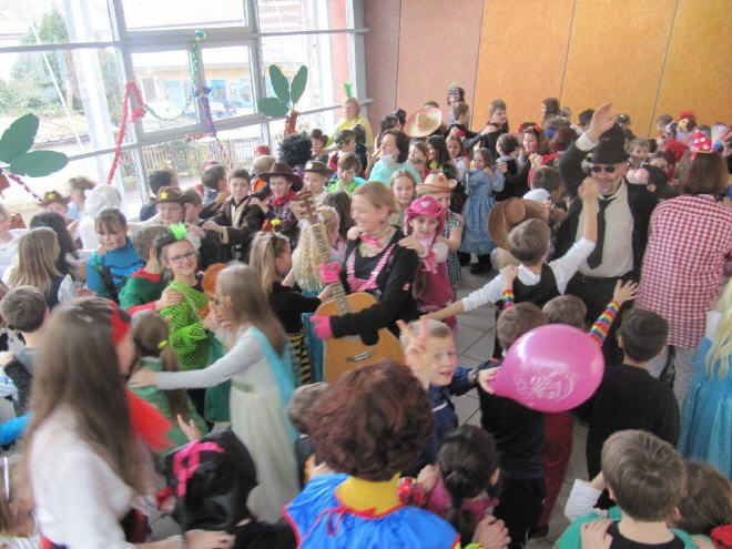 Wir Grundschüler feierten am Freitag, 17.2.2012 mit unseren Lehrern einen tollen Schulfasching. Dieses Jahr tanzten Punker, Cowboys und Indianer nicht nur im Musiksaal, sondern auch in der Turnhalle. Außerdem durften wir Dank der Großzügigkeit unseres TV-Brenz zudem zum Faschingskegeln in die Kegelbahn.