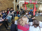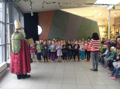 Wenn so viele nette Kinderstimmen begleitet von Flötenkindern aus den Klassen 2 ‚sein‘ Lied singen, dann lässt es sich der Nikolaus nicht nehmen, sogar am 7. Dezember sich noch einmal auf den Weg zu machen und, begleitet von seinen zwei Eseln, die Kinder zu besuchen. Aber bevor die Schülerinnen und Schüler ihre Geschenke erhielten, erfreuten sie den Nikolaus noch mit netten Gedichten.