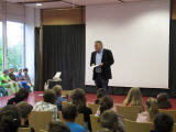 Aber nicht nur im Forum, sondern auch in den Fachräumen, den Klassenzimmern und in der Grundschulaula gab es Interessantes zu sehen und Vieles zum Ausprobieren. Das Kinderbuch ‚Frederick’ wurde von Zweitklässlern szenisch hervorragend umgesetzt. Welche Probleme Tiere auf dem Bauernhof mit einem schnarchenden Hund haben, demonstrierten die Erstklässler auf ihre Art und Weise. Auf dem Flohmarkt konnten Schnäppchen erstanden werden, und die Versuche in den naturwissenschaftlichen Räumen, im tropischen Klassenzimmer, in der ‚Geisterstadt’ und im Technikbereich lösten immer wieder Verwunderung aus. Auch der Schachclub beteiligte sich im Rahmen der Kooperation und bot die Möglichkeit, sich mit Vereinsspielern zu messen.