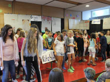 Die GWRRS wurde am 14. Juli, dem französischen Nationalfeiertag, zu einer kleinen französischen Insel. An diesem sonnigen Sommerabend konnten sich Schüler, Eltern und Lehrer durch musikalische und kulinarische Köstlichkeiten ins Land der Gallier entführen lassen. Nach der Einstimmung durch die französische Nationalhymne, die „Marseilleise“, traten die Schüler der 7. Realschulklasse nach einem Jahr Französisch-Unterricht bereits als Lehrer auf und bemühten sich, dem Publikum die wichtigsten französischen Ausdrücke nahezubringen. Neben dem aktuellen Rapsong „Zombie“ der 9. Klassen durften natürlich auch Chansons nicht fehlen. So boten die sechs Schüler der R8 eine musikalische Wiederbelebung der Klassiker „Paris sera toujours Paris“ und „Jardin“, die vielen Franzosen noch im Ohr sein dürften. Schließlich hatten auch die Zuschauer die Möglichkeit, aktiv zu werden und boten damit den krönenden Abschluss des musikalischen Programms. Natürlich durfte auch kulinarisch in Urlaubserinnerungen geschwelgt werden: angefangen beim „Crémant“, über „Sandwichs au Thon“, bis hin zur „Mousse au Chocolat“. Voilà: Alles in allem eine ziemlich perfekte Illusion – einstudiert von Lehrerin Frau Hinz.