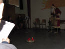Dort wartete schon eine Überraschung auf die phantasievoll verkleideten Prinzessinnen, Cowboys, Agenten, Polizisten, Indianer, Clowns, Tiger, Ritter und Piraten. Der Zauberer Freddy Fiasco hatte sich eingefunden. Er zog mit den verschiedensten Zauberkunststücken die Kinder in seinen Bann.