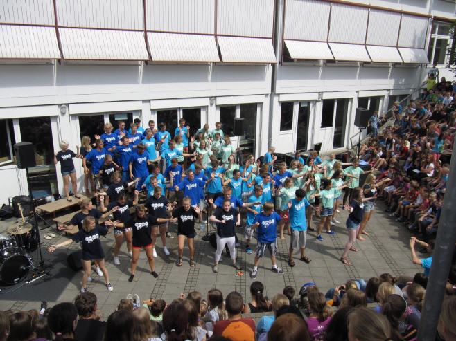 Die Schülerinnen und Schüler der GWRRS Sontheim waren ordentlich überrascht, als am 4. Juli zwei Busse mit fast 100 norwegischen Musikern Halt machte. Ein Heggen Gospel – organisiert von Lehrer Michael Schmid – gab zu seinem 40-jährigen Jubiläum ein Konzert in Sontheim, das die Schüler und die Lehrer so schnell nicht vergessen werden. Eine vollständige Band und ca. 90 Sängerinnen und Sänger gaben ein Konzert voller Bewegung und Abwechslung. Die Spielfreude war deutlich erkennbar, Gesang und Chorleitung wechselten fleißig durch, so dass der einstündige Auftritt sehr kurzweilig war. Es waren sich alle einig, der Heggen Gospel aus Vikersund wäre im nächsten Jahr wieder ein gern gesehener Gast im Amphie der GWRRS Sontheim.