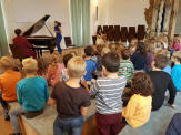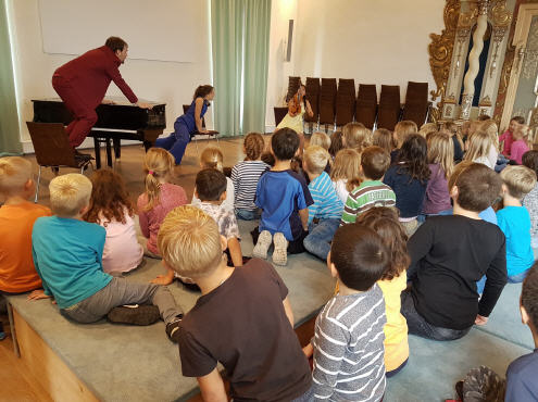 Am 09.10.2018 besuchten die Klassen 1 und 2 das Musiktheater "JAM!" im Brenzer Schloss. Eine Violinistin, ein Pianist und eine Schauspielerin nahmen die Kinder ohne Worte auf eine musikalische Reise mit.