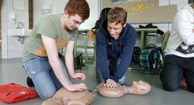 Die vom Land BaWü ins Leben gerufene Aktion sensibilisiert und trainiert Schüler/innen um Umgang mit Herzstillstand und Wiederbelebung.