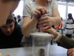 Die Klasse 3/4c beobachtete und untersuchte verschiedene Wassertierchen, wie z.B. Kaulquappen und Libellenlarven in ihrer natürlichen Umgebung. Dabei benutzten sie die verschiedensten Arbeitsmittel, angefangen beim Kescher über Pinzetten bis hin zu Mikroskopen.