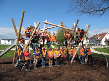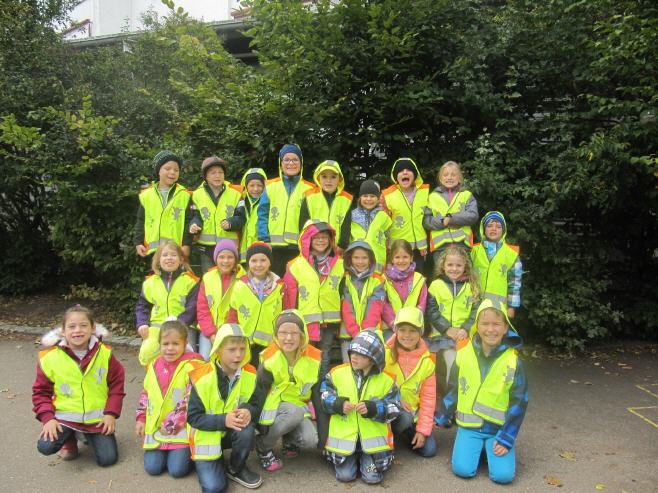 Dann ging es aber endlich in den Buigenwald, wo die Schüler mit verschiedenen Spielen und Waldforscheraufgaben viel Spaß hatten und auch so einiges lernten: So wurden Bäume vermessen und daraus dann das Alter der Bäume berechnet. Und die Drittklässler erfuhren, dass ein Teil dieses Waldes seit ungefähr 40 Jahren ein sich selbst überlassener Bannwald, also ein richtiger Urwald ist.