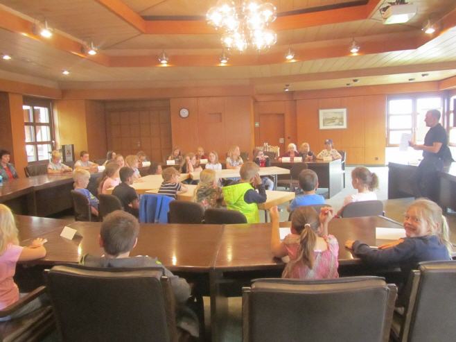 Im Rahmen der Unterrichtseinheit „Unsere Gemeinde“, besuchten die Klassen 2a/b/c der GWRRS Sontheim am 05.06.13 Bürgermeister Kraut im Rathaus.