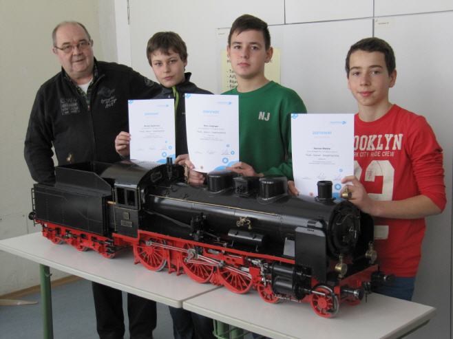 „Feuer – Wasser – Dampfmaschine“, so betitelte Michael Baumann aus Sontheim a.d. Brenz sein Projekt. Ziel seines Kurses war, den Teilnehmern die abenteuerliche Welt der Dampflokomotive näher zu bringen. Schüler aus Sontheim und Niederstotzingen interessierten sich für diese Materie. Sie fanden sich über drei Monate hinweg jeweils am Mittwochnachmittag in der Grund-, Werkreal- und Realschule in Sontheim ein. Dabei lernten sie nicht nur die Funktionsweise einer Dampfmaschine kennen, sondern sie bauten zusammen mit dem erfahrenen Modellbauer Michael Baumann eine in Einzelteile zerlegte Dampflok im Maßstab 1:11 wieder zusammen. Und im Frühjahr geht’s zur Belohnung für die geleistete Arbeit nach Lindau, wo eine große Freiluft- Anlage mit Modellbahnen dieser Größe die Gelegenheit bietet, selbst Lokführer zu spielen.