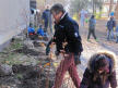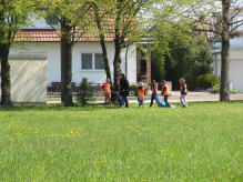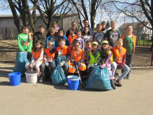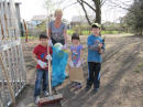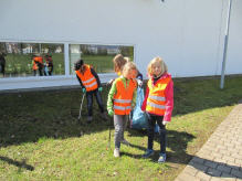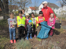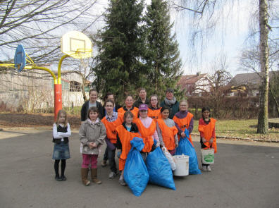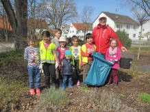 den Unrat in der Umgebung der Sporthalle. Auf dem Verbindungsweg zur Schule, dem Jakob Häfele Weg, waren die Jugendbegleiterinnen Hadwig Franz, Birgit Romes und Christiane Woisetschläger mit den Kindern der ‚Spaß in der Natur‘ - AG unterwegs und die ‚Koch- AG‘ mit ihrer Jugendbegleiterin Corinna Schwarze befreite das Gebiet um die Georgskirche und den Schulhof von herumliegendem Müll.