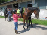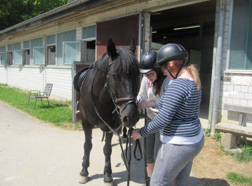 Cornelia Bauch, die die AG von Februar bis Juli besucht hat, schildert uns ihre Eindrücke: „ In der ersten Stunde wurde uns viel Theorie beigebracht. Auch wurde uns Vieles gezeigt. Doch danach hatten wir viel zu tun. Zu Beginn der Reitstunde putzten, sattelten und trensten wir die Pferde. Anschließend durften wir im Stall oder bei gutem Wetter im Freien reiten. Solveig, Nicole oder Sabrina waren hier immer dabei. Nach dem Reiten mussten wir die Pferde wieder absatteln und abtrensen. Falls wir Hilfe brauchten oder nicht mehr weiter wussten, fragten wir einfach unsere Reitlehrerinnen um Rat. Viel zu schnell gingen die AG – Stunden immer vorbei.“