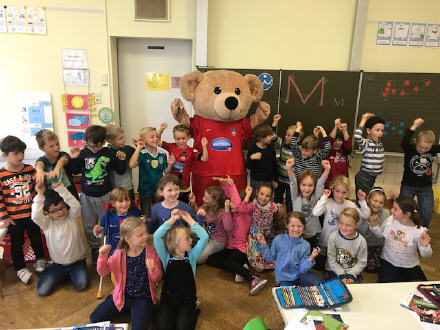 Das FCH-Maskottchen hat am 8.10.2018 in Begleitung von Anna-Lena Fotiadis die Erstklässler der Grundschule Sontheim besucht und den Schulanfängern einen guten Schulstart gewünscht. Die Kinder durften dem Paule Fragen stellen und ihn in den Arm nehmen. Für die Kinder hatte das Maskottchen FCH Stundenpläne, Paule Bande Magazine und Ausmalbilder im Gepäck. Als ganz besondere Überraschung gab es Freikarten für ein Heimspiel und Gutscheine für den FCH Fanshop. Die Kinder waren sehr begeistert von Paule und wollen ihm – sobald das mit dem Schreiben klappt - einen Brief schicken.