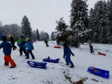 Als wir am Schlittenberg ankamen und unsere Rucksäcke ablegten, konnte der Schneespaß losgehen!