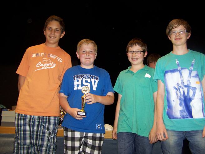 113 Schulschachmannschaften*** – Viererteams – trafen sich Ende Juni zu einem siebenrundigen Schnellschachwettkampf nach dem Schweizer System (verkürztes Rundensystem) in der Aalener Stadthalle. In der Kategorie „Realschulmannschaften“ trat die Sontheimer Grund-, Werkreal- und Realschule GWRRS mit einem leistungsstarken Team an und wurde prompt Landesmeister und erhielt den entsprechenden Baden-Württembergischen Schulschachpokal 2013. Für die Sontheimer GWRRS war es erst die dritte Teilnahme am Baden-Württembergischen Schulschachpokal, allerdings auch zum dritten Mal mit dem Erfolg der Meisterschaft wie bereits 2008 in Neuenbürg und 2010 in Neckarsulm. Für die Sontheimer punkteten an den Brettern 1 – 4 Johannes Buck (5), Benedikt Kübler (4),Matthias Buck (5) und Jonathan Hartmann (5).
