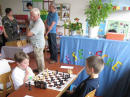 Gleich 26 Schülerinnen und Schüler der Grundschulen Sontheim und Brenz folgten dem Aufruf, erstmalig den „Grundschulmeister“ der Gemeinde zu bestimmen. Das Turnier ging über 7 Runden und wenn man bedenkt, dass einige der Teilnehmer Schach extra für das Turnier gelernt hatten, machten sie das alle richtig gut. Natürlich mussten die helfenden Schüler der Realschule immer mal wieder eingreifen, wenn es Fragen gab oder der ein oder andere „unmögliche“ Zug gemacht wurde, was aber der Spielfreude der Spielenden nicht schadete. Im Gegenteil: Sie wurden mit den Gegebenheiten, u.a. dem ungewohnten Bedienen der Schachuhr immer vertrauter, je länger das Turnier dauerte. Nach guten 3 Stunden standen dann auch die Sieger fest. Unter den ersten Vier, nicht wirklich überraschend, die vor gut 5 Wochen erfolgreiche Grundschulmannschaft. Mit 6,5 Punkten sicherte sich von den Vieren Torben Horsch (Kl.4) souverän den Sieg vor seinen Klassenkameraden Jakob Maier und Eric Horsch (beide 5,5 Punkte). Da sich die beiden Nächstplatzierten Kaya Kaplan und Elias Kraut für die Siegerpokale der Klassen 2 bzw. 3 entschieden, bekamen Dennis Unten (6.) und Tim Schneider (7.) die Pokale für die Plätze 4+5. Aurora Sommer (Kl.3) sicherte sich in einem spannenden Finish gegen Leni Baranyai glücklich den Punkt und gewann somit den 1. Platz bei den Mädchen (es nahmen neun Mädchen teil). Da Jasmin Foitl sich für den Siegerpokal der 4. Klasse entschied, bekam Katharina Wolf (Kl.3), welche in der letzten Runde am Spitzenbrett gegen Torben ran musste, den Pokal für das zweitbeste Mädchen. Der dritte Platz der Mädchenwertung ging an die punktgleiche Emma Kammerer (Kl.4). Der Pokal für den Sieger der 1. Klasse ging an Johannes Weber, der ausschließlich gegen Ältere drei seiner sieben Partien gewinnen konnte. Neben den Pokalen, die der Schachklub bereitstellte, gab es noch verschiedene Preise, u.a. die von der Kreissparkasse gestifteten, aufblasbaren Surfboards, sodass kein Teilnehmer den Schachraum ohne Preis verlassen musste. Ein „Herzliches Dankeschön“ allen Helfern, aber vor allem den fairen Schülerinnen und Schülern. Hoffentlich gibt es im nächsten Jahr die 2. Auflage des Grundschulpokals.