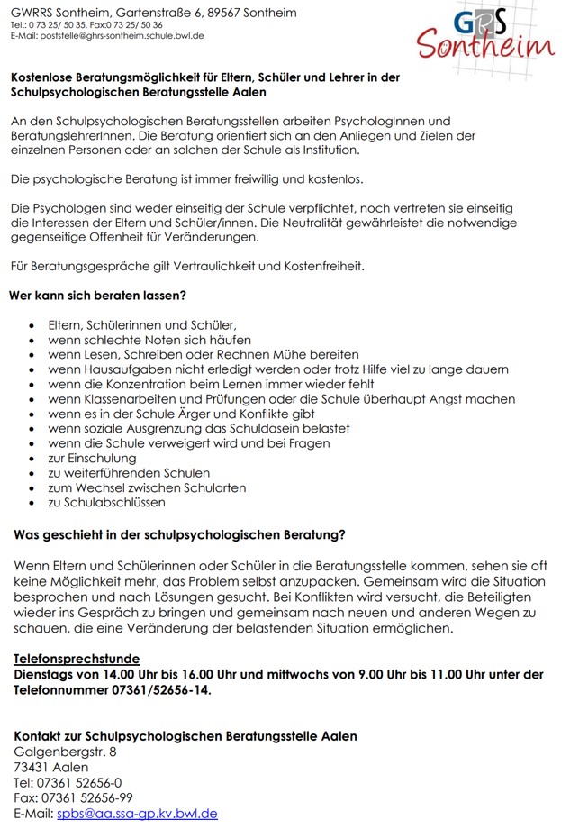 Schulpsychologische Beratungsstelle (SPBS) Aalen
