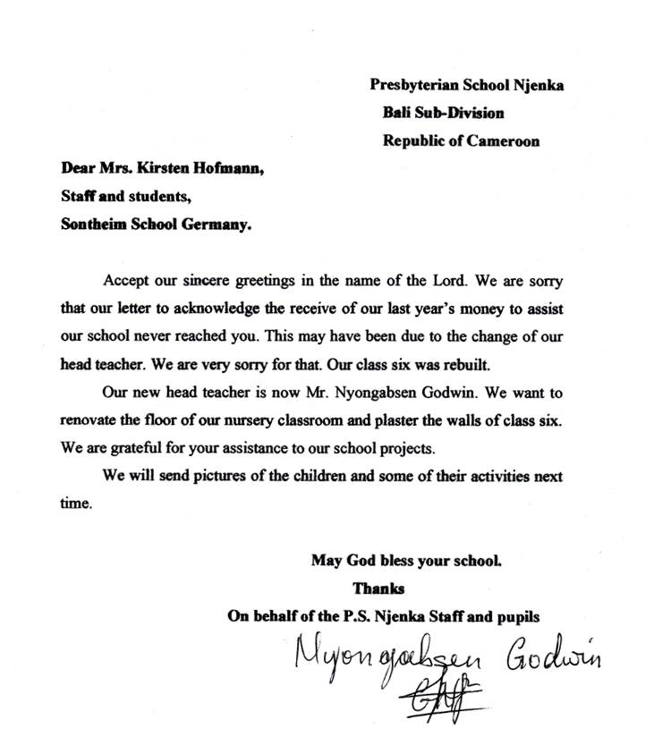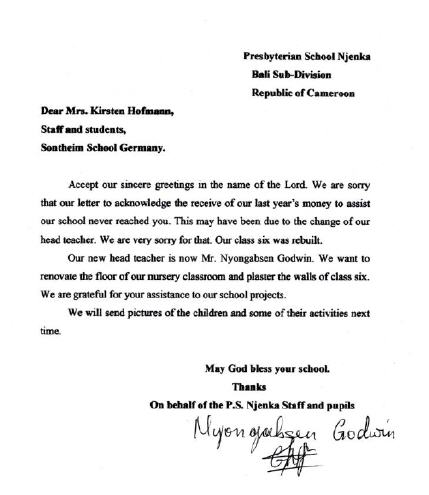 Die SMV hat sich dafür entschieden, die Schule Njienka in Cameroon zu unterstützen. Wir danken Frau Hofmann für die Initiative und ihr großes soziales Engagement.